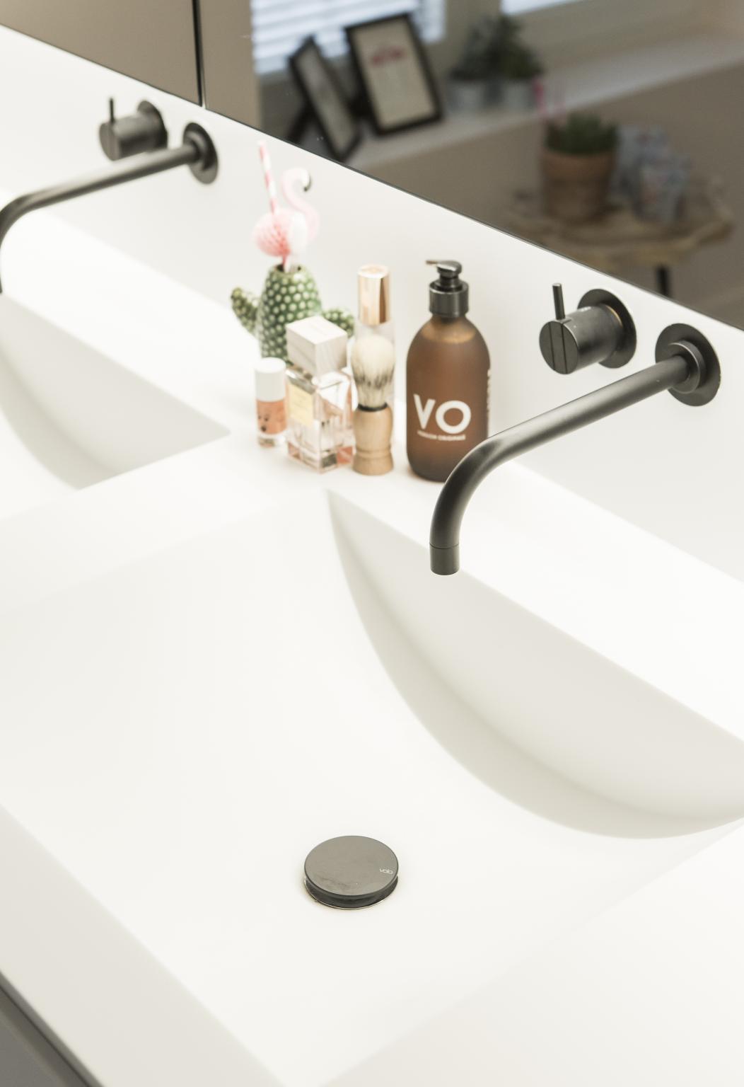 - Lavabotablet in solid surface met twee ingewerkte waskommen
