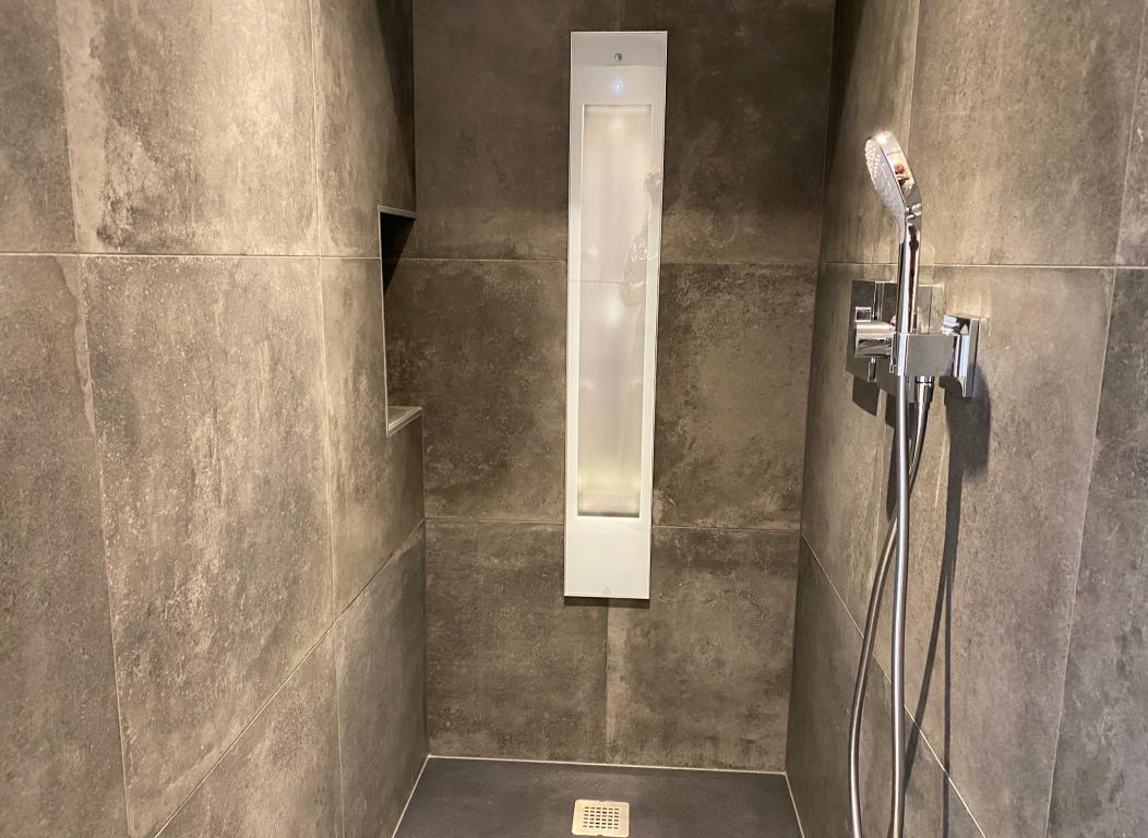 Het bad werd vervangen door een ruime inloopdouche met infraroodpaneel! Luxe meets comfort